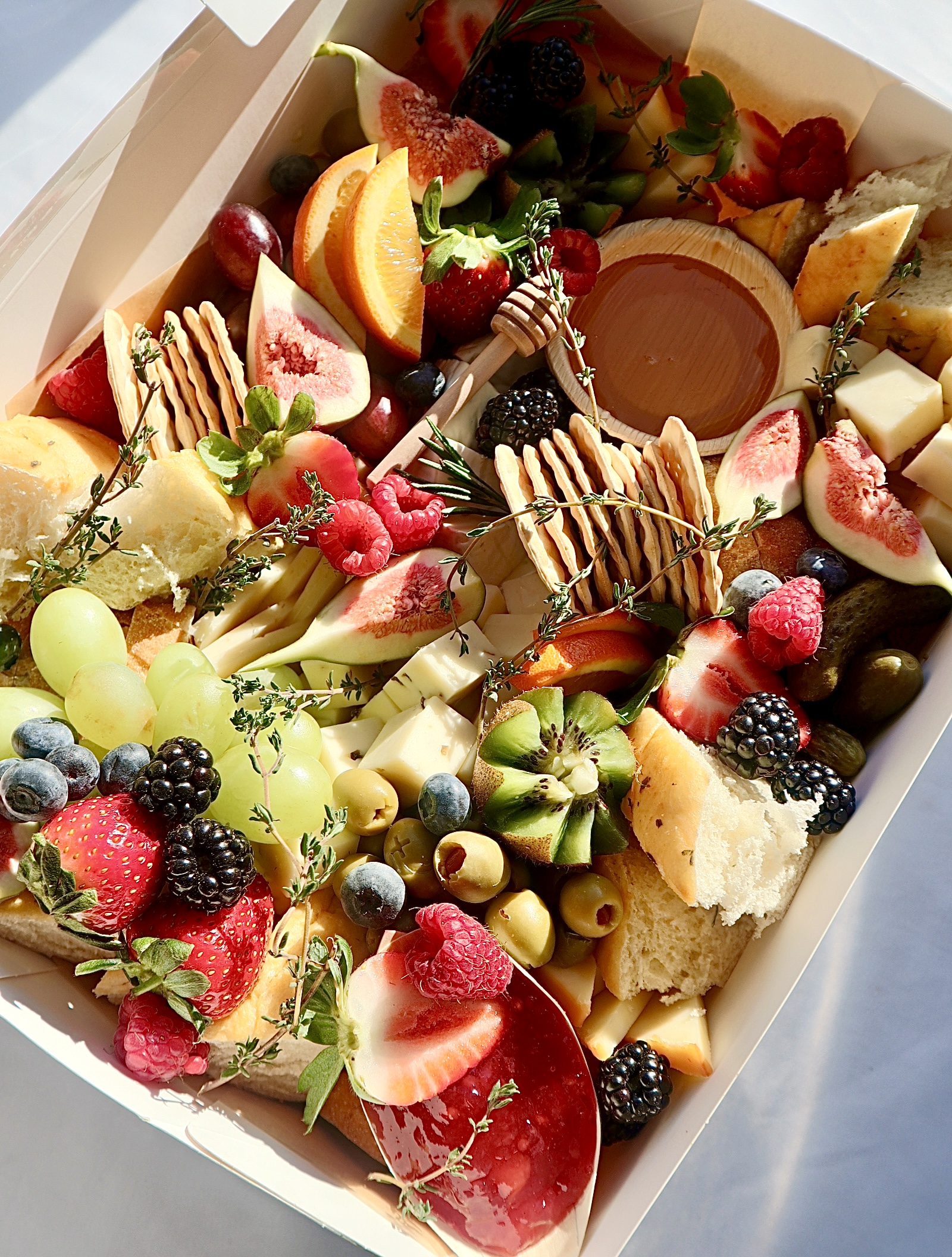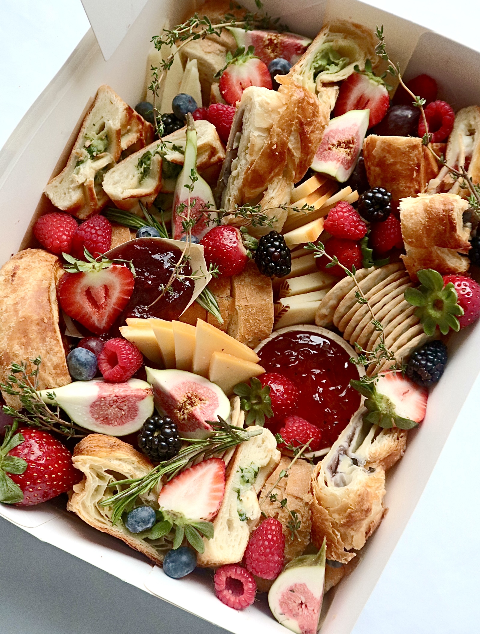 At Nourish & Fulfill, our Brunch Boxes are filled with an amazing selection of freshly baked goods or pastries, charcuterie meats, artisan cheeses, seasonal fruits, locally crafted jams, sweet treats and other delicious accompaniments. You can enjoy brunch boxes at home, office or with friends.