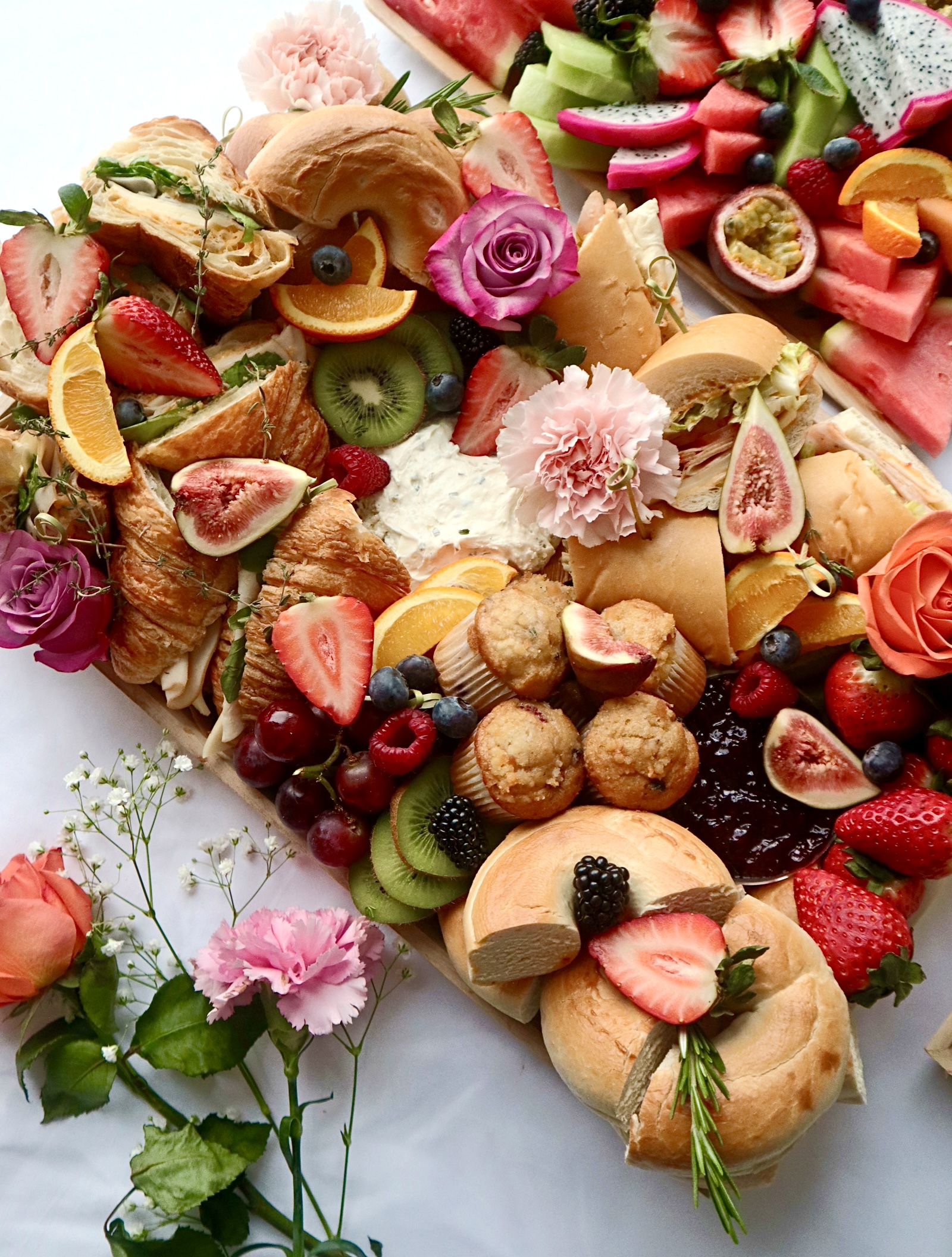 Includes fresh bagels & pairings, croissant or ciabatta sandwiches (custom sandwich picks), fresh fruit, brunch pastries, jams and accompaniments