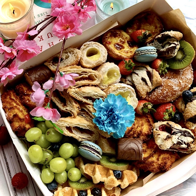 The dessert brunch box is a delectable box of goodness for a perfect night in or a morning filled with laughter out in the sun!