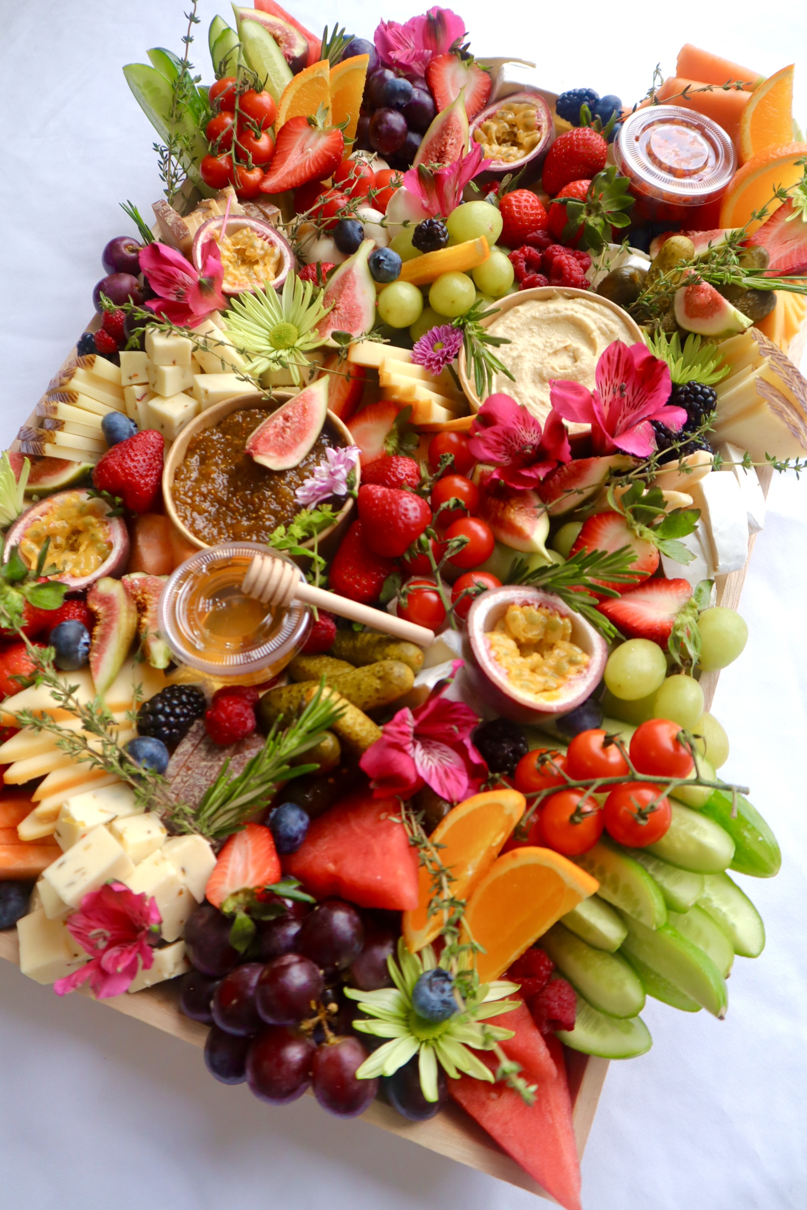 The Veggie Nourish Platter is packed with fresh fruit, 6-8 selections of specialty cheeses and pairings, artisan bread, perfectly paired crackers, bold-flavoured jams and accompaniments, crudités & specialty dips.